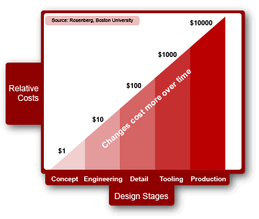 - A recent Wohlers Industry Report notes that a modest engineering change costing $100 in the concept phase could escalate to a staggering $1,000,000 when the product is in the field.